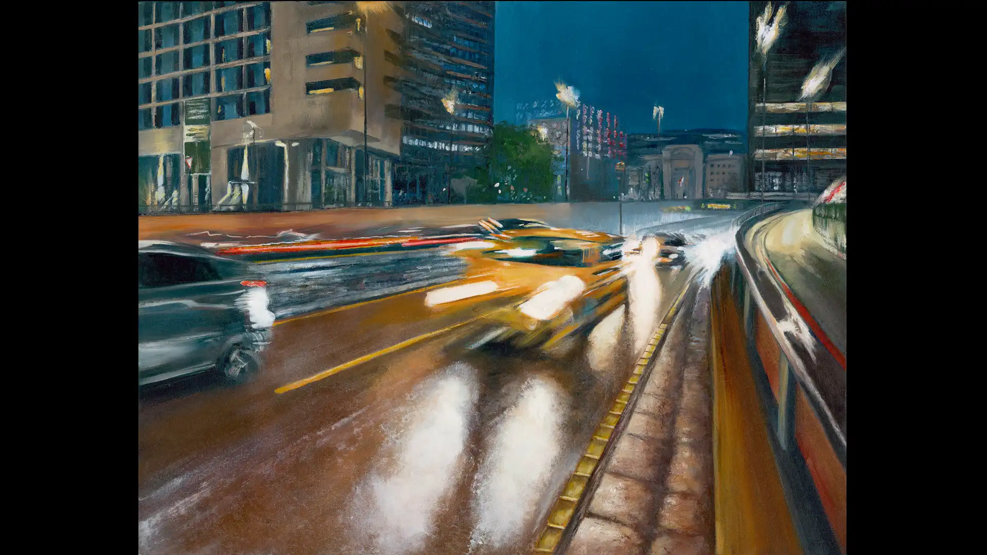 Birmingham inspires me more than any other city. Its roads, underpasses, and towering buildings pulse with movement and light. I paint the city at night and in the rain, because that is when the reflections and energy come alive. The glow of headlights, the shimmer of wet tarmac, and the rhythm of traffic all become part of my canvas.